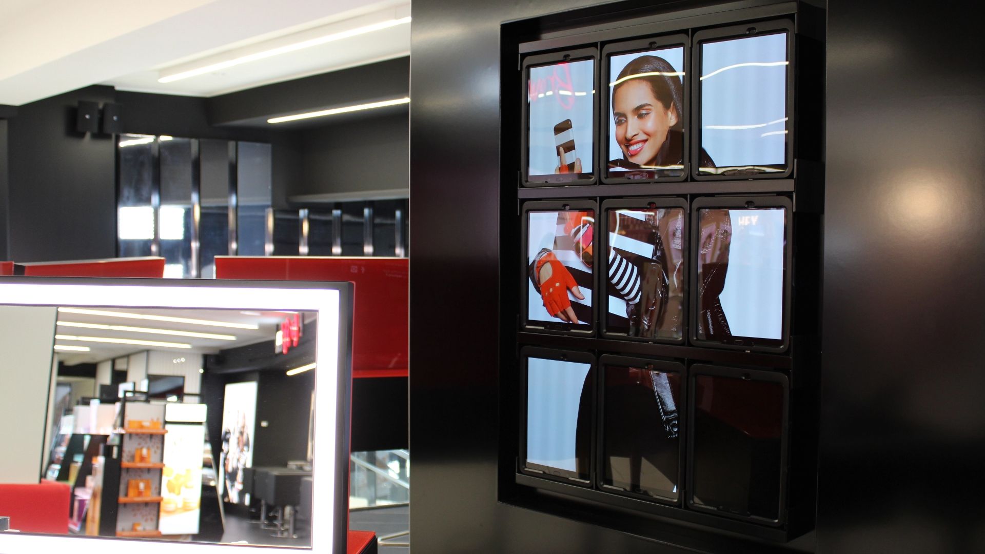 Nel flagship store di Sephora tutti i supporti multimediali sono pensati per funzionare anche in assenza di connessione; i contenuti sono programmabili, modificabili e gestibili attraverso un CMS professionale.